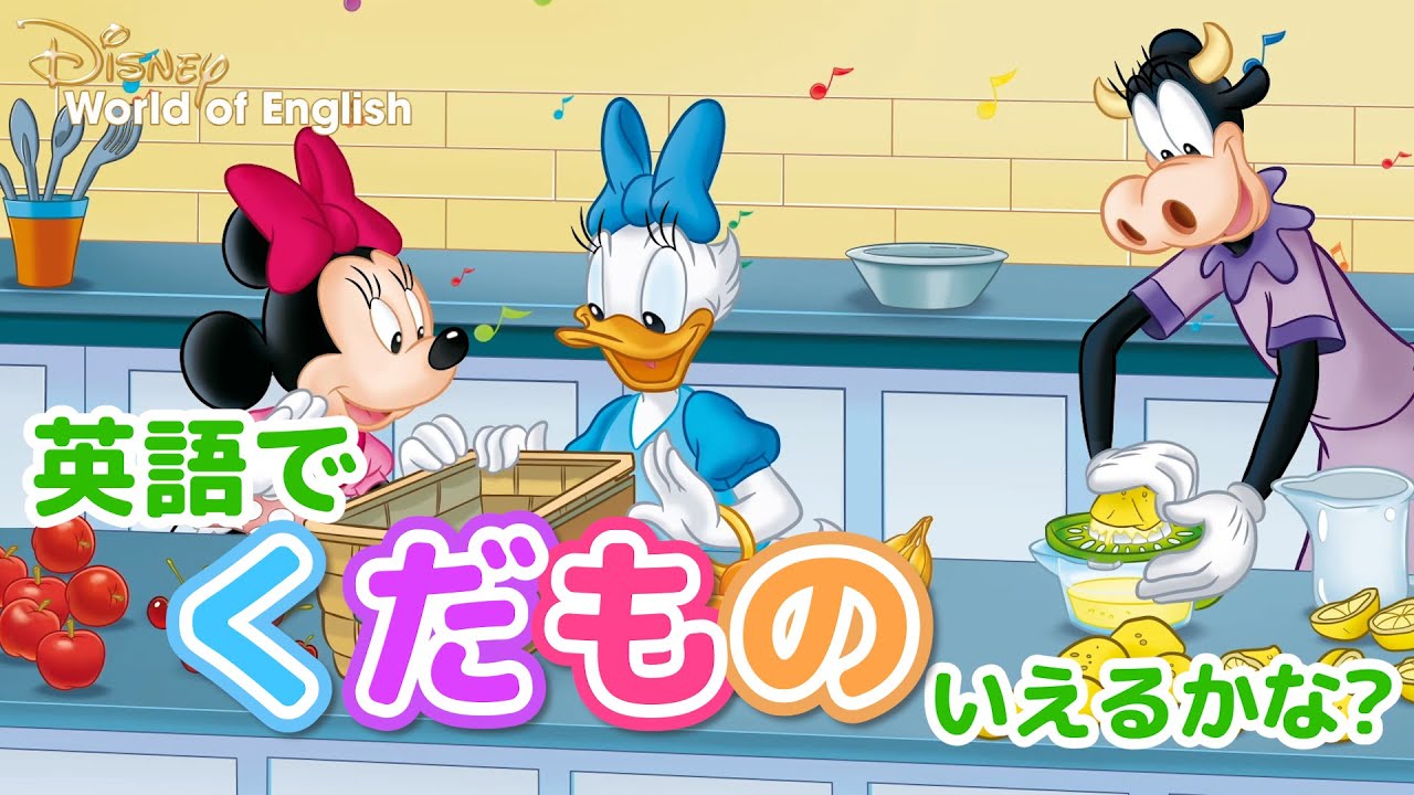 ディズニー英語システム(DWE)なら、「くだもの」の名前もディズニーキャラクターと一緒に英語で楽しく覚えることができます!